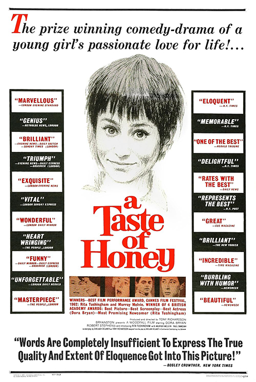 Black and white, gay and straight, mothers and daughters, class, and coming of age. Jo is working class, in her teens, living with her drunk and libidinous mother in northern England. When mom marries impulsively, Jo is out on the streets; she and Geoffrey, a gay co worker who's adrift himself, find a room together. Then Jo finds herself pregnant after a one night stand with Jimmy, a Black sailor. Geoffrey takes over the preparations for the baby's birth, and becomes, in effect, the child's father. The three of them seem to have things sorted out when Jo's mother reappears on the scene, assertive and domineering. Which "family" will emerge?