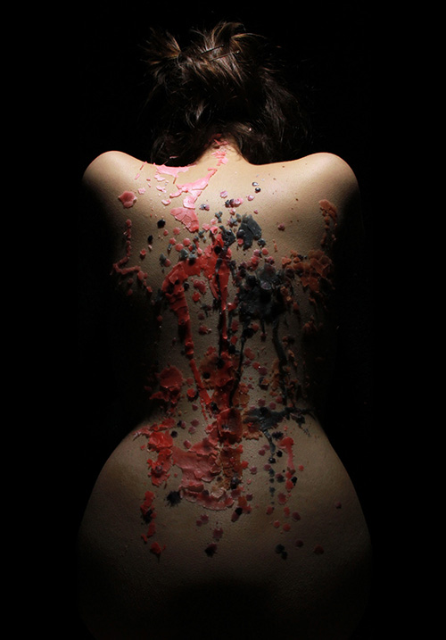 Sexo como gesto criativo mútuo. Em Action Painting No. 1, ela responde aos movimentos dele arranhando suas costas e deixando marcas de sangue. Em Action Painting No. 2, ele pinga cera de vela quente nas costas dela durante o ato.