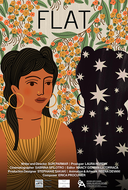 Flat is a live-action and animated documentary short, in which filmmaker Suri Parmar discusses her struggles with breast cancer, gender, and body image as she heals from a double mastectomy without reconstruction and reclaims her identity.