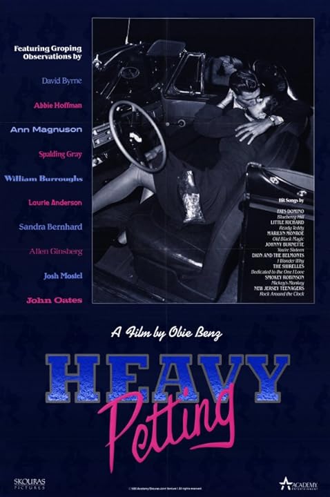 HEAVY PETTING is a hilarious and salacious exploration of the sexual mores of the 50's as seen through the eyes of a generation that lived through the Sexual Revolution. Creative baby boomers-- including musician David Byrne, performance artist Spalding Gray, comedian Sandra Bernhard, radical activist Abbie Hoffman, and poet Allen Ginsberg-- candidly recall their sexual coming-f-age tales in intimate interviews. Joyously campy and refreshingly carefree, HEAVY PETTING blends humorous, unbelievable footage of unhelpful sex-ed films with classic snippets of THE WILD ONE and Elvis' hip gyrations, not to mention Bernhard talking about playing "doctor", always observant Ginsberg on a disastrous encounter with a girl, and Byrne on the childhood myths of masturbation. Eternal mysteries such as the female orgasm, the universal appeal of Marilyn Monroe, and the rituals of high school are laid bare by this lovable group of characters.
