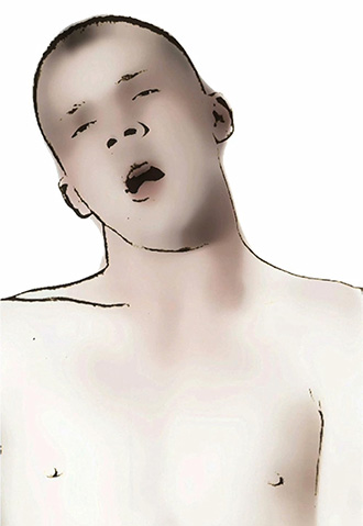 Overcome is a rotoscope animation that loops a simple performance about ego and Eros. In the tradition of the peepshow a private sexual performance is made public. A lone figure enters the frame, smirks at the camera and gets down to business. Is he simply there to entertain himself or is this a performance for the viewer? It eventually goes terribly wrong when he quite literally drowns in his own ego. This video is meant to be screened vertically and looped endlessly.