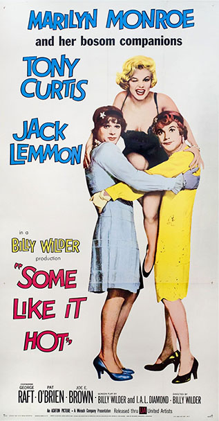 When two Chicago musicians, Joe and Jerry, witness the the St. Valentine's Day massacre, they want to get out of town and get away from the gangster responsible, Spats Colombo. They're desperate to get a gig out of town but the only job they know of is in an all-girl band heading to Florida. They show up at the train station as Josephine and Daphne, the replacement saxophone and bass players. They certainly enjoy being around the girls, especially Sugar Kane Kowalczyk who sings and plays the ukulele. Joe in particular sets out to woo her while Jerry/Daphne is wooed by a millionaire, Osgood Fielding III. Mayhem ensues as the two men try to keep their true identities hidden and Spats Colombo and his crew show up for a meeting with several other crime lords.