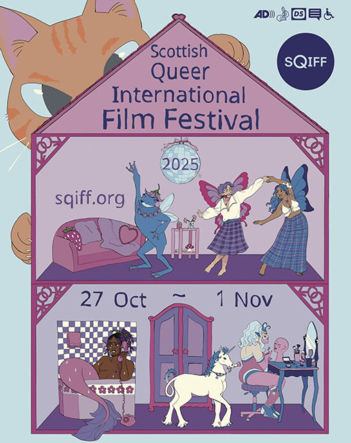 SQIFF (Scottish Queer International Film Festival) was formed with the aim of adding to the exciting and growing amount of queer film stuff happening around Scotland. Since 2015, we have held an annual Festival in Glasgow alongside providing year round events across various locations.