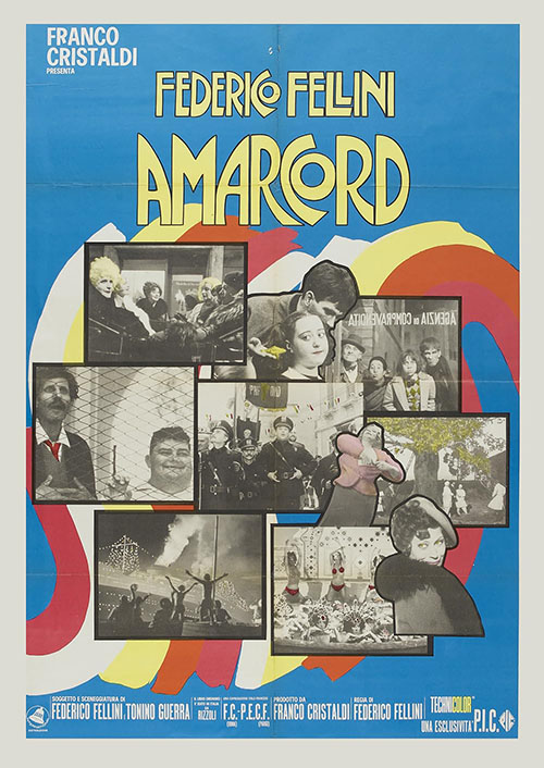 A year in the life of a small Italian coastal town in the nineteen-thirties, as is recalled by a director with a superstar's access to the resources of the Italian film industry and a piper's command over our imaginations. Federico Fellini's film combines the free form and make-believe splendor with the comic, bittersweet feeling for character and narrative we remember from some of his best films of the 1950s. The town in the film is based on Rimini, where Mr. Fellini grew up. Yet there is now something magical, larger-than-life about the town, its citizens and many of the things that happen to them.