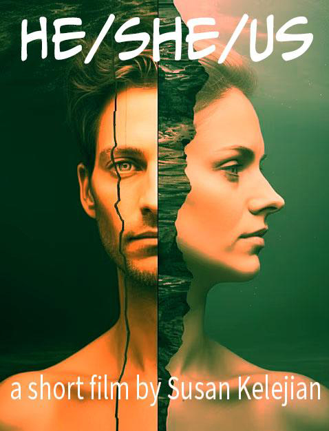 He/She/Us opens on Astrid tentatively entering an eclectic clothing store. A store clerk tells her that her ex, Paolo, is changing in the dressing rooms. Texting him that she has arrived, Astrid nervously waits for him. "Ta-da!" Here he is, wearing a completely different style, coming across as a type Astrid never would believe he would portray himself. Paolo is taken aback at her shock and tries to stop her from leaving. As the clerk and some customers overhear, an argument ensues over core beliefs. Paolo desperately wants Astrid back in his life despite his changes. Through their dialogue, it is revealed that Astrid cannot see herself in a relationship with a male, as Paolo was her lesbian partner who has recently completed his gender transition. As Astrid struggles to find it within herself to get back together with him, since she misses the woman her partner was, Paolo fights for love in what they might become.