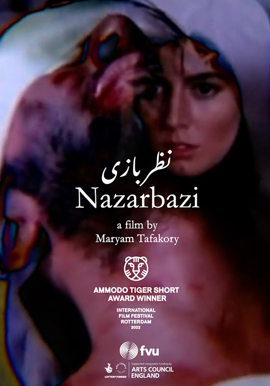 After the revolution in 1979, Iran prohibited the depiction of men and women touching on the silver screen. Since then, directors have relied on every cinematic trick in the book to mirror the ecstatic release of tension through touch - but often it is the game of glances that is enough to set a scene ablaze. Nazarbazi collages these saturated cinematic moments into a poem about love and desire in Iranian film, that also echoes our own time of physical distancing.