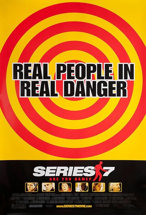 Ever seen the show "Survivor" and wished they would just start killing each other?? Series 7 literally gives its contestants the guns. The film is not merely a satire on reality TV. It is an example of just how far people will shamelessly go for fame. 6 contenders are pitted against each other in a no holds barred, kill or be killed contest. The reigning champ is Dawn, a hard-nosed, mother-to-be. We go back and forth between Dawn and the other 5 contenders to see if someone can dethrone Dawn and become the new Champion. What is the prize? How are the contestants picked? These questions are not as important as asking yourself how shameless has our society become?
