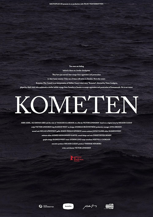 The sea. High waves. Dark water. A border fence, two men in hiding. Their flight begins. Only one of them will reach Sweden. One of the men is played by Abdi Aziis, who himself has fled from Somalia to Sweden in order to escape the oppression and persecution of gay men. “He is our comet” explains director Victor Lindgren, who, in merely a few selected situations, manages to convey the exertions, the deep abyss, the arrival and the loneliness of those who flee. Both men lay alongside each other on a bench, one arm extended across the other’s belly – an image that symbolizes their intimacy, their shared experience. And in the next moment it’s all gone. Forever. How can life go on?