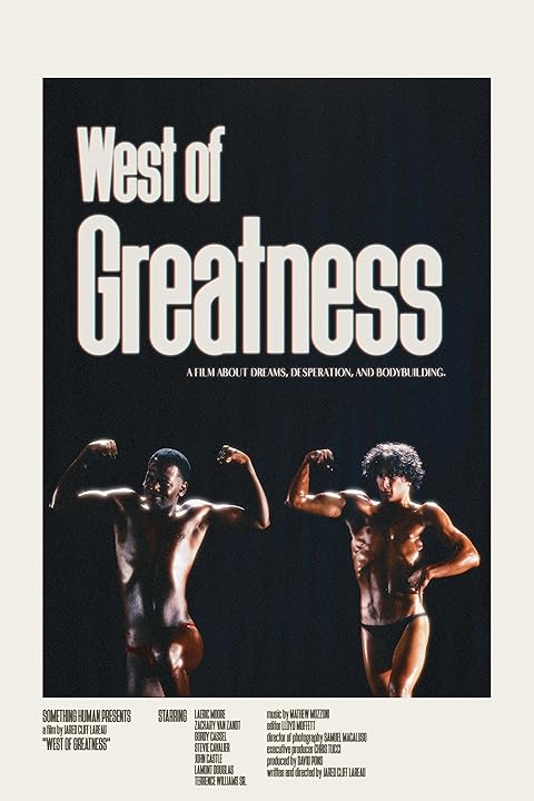 In a fading Louisiana town, Jerome dreams of Hollywood while Terry seeks escape from a troubled home. United by desperation, they train for a high-stakes bodybuilding competition that becomes their shot at something more. Filmed over 18 months, West of Greatness blazes a bold new trail in cinematic storytelling, blending raw documentary with scripted drama. It's a haunting, human story of ambition, survival, and the quiet bond that forms when there's nothing left to lose.